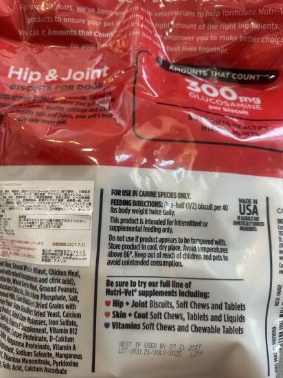 Nutri-Vet Hip & Joint Biscuitsは、愛犬の関節の健康をサポートするための、手軽に手軽に与えたい飼い主様に最適な製品です。